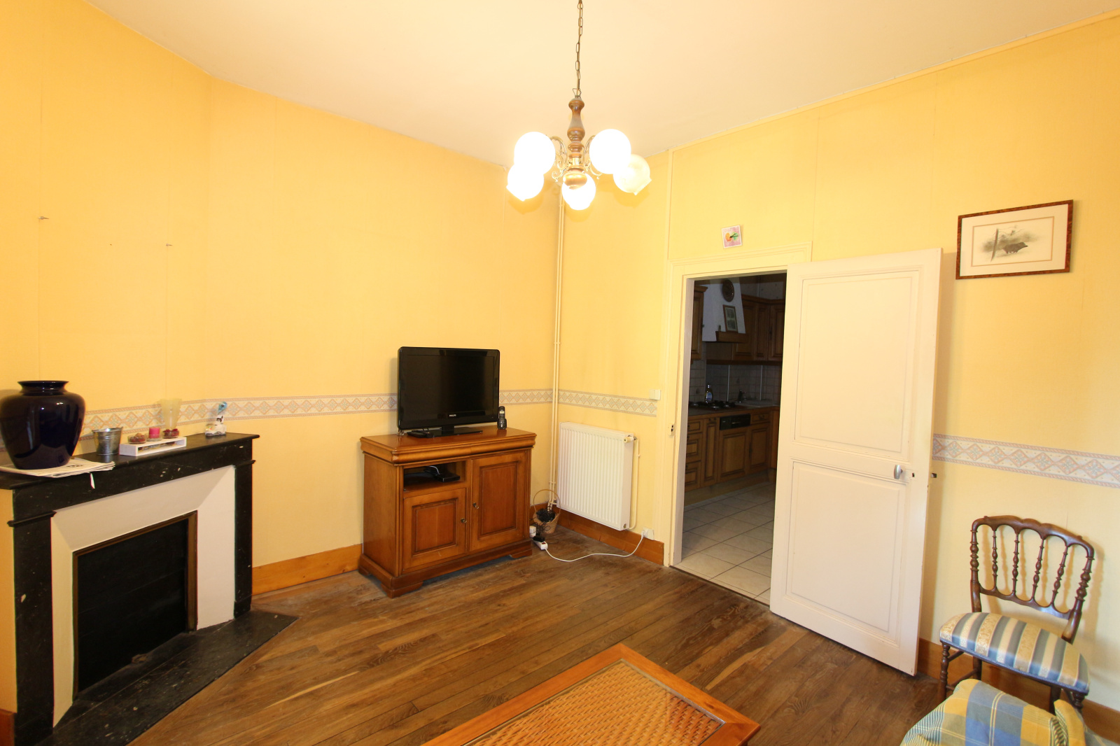 Maison ancienne avec beaucoup de charme, parquet et cheminée. Au rez-de-chaussée, vous découvrirez, un salon, un séjour, une cuisine, une chambre et des toilettes.