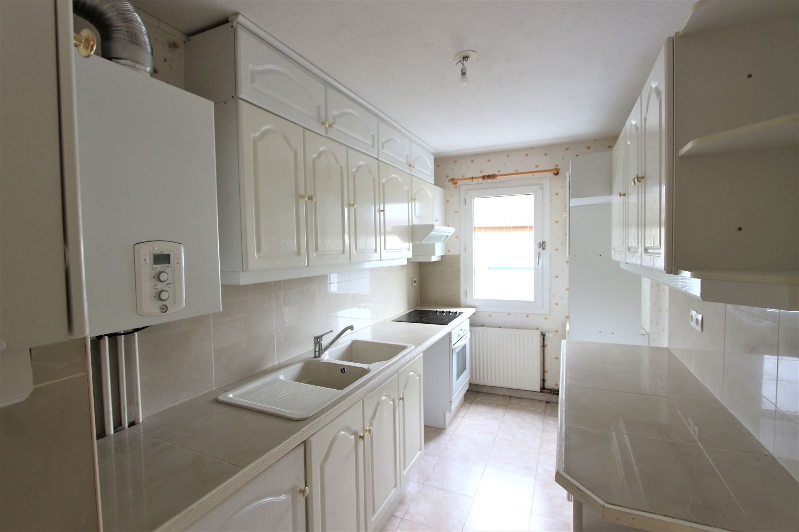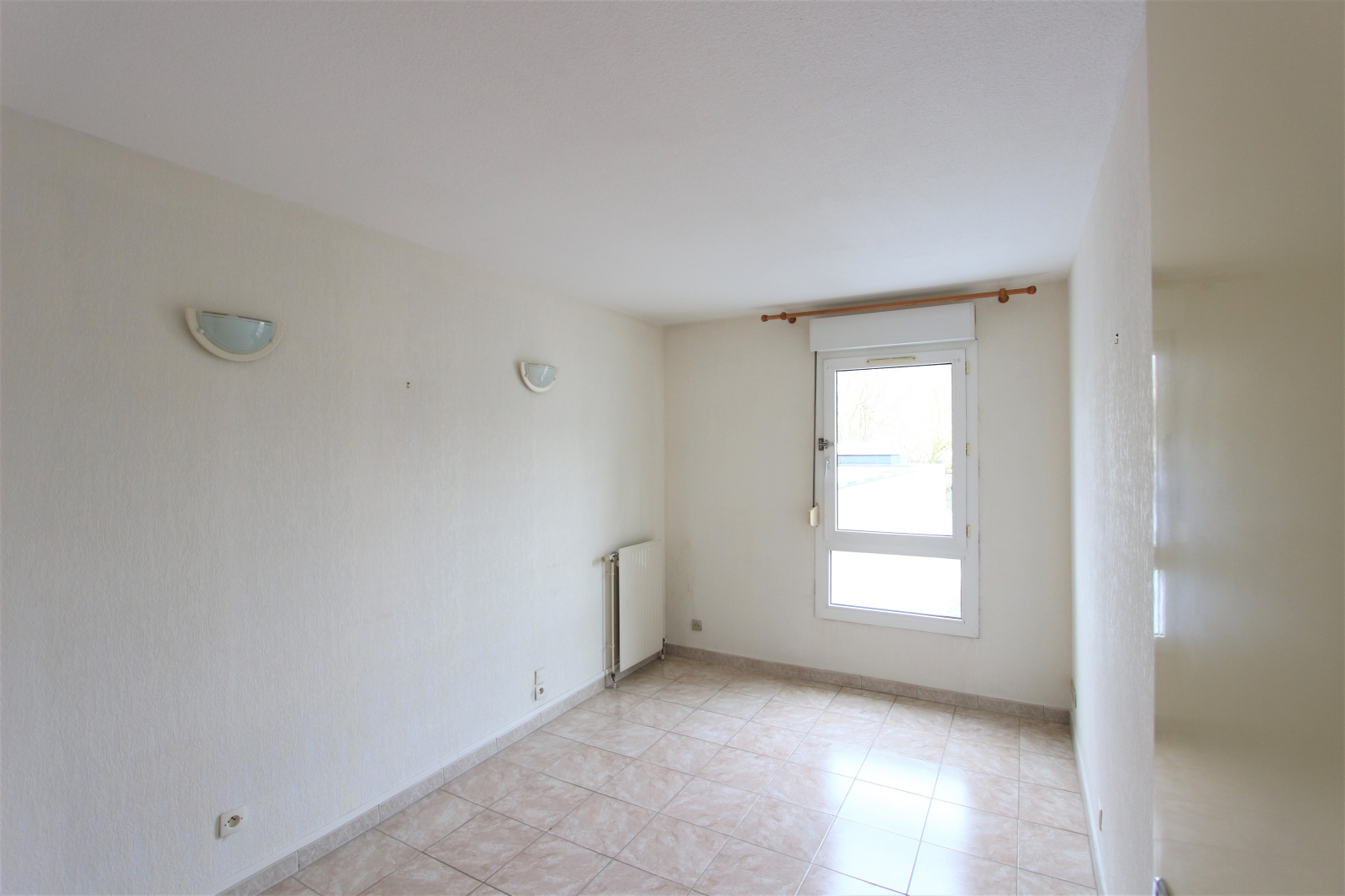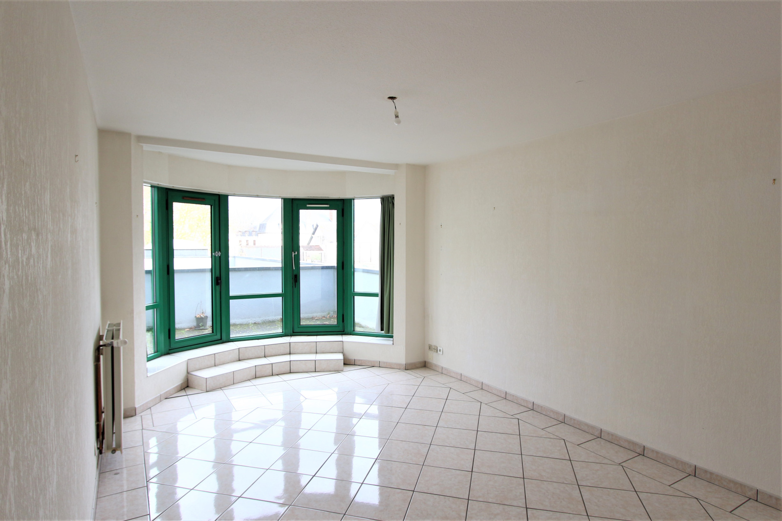 Au 1er étage avec ascenseur, agréable appartement avec terrasse. Séjour avec bow-window, cuisine équipée, 2 chambres, salle de bains et WC.