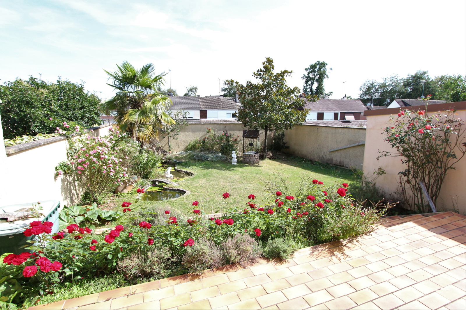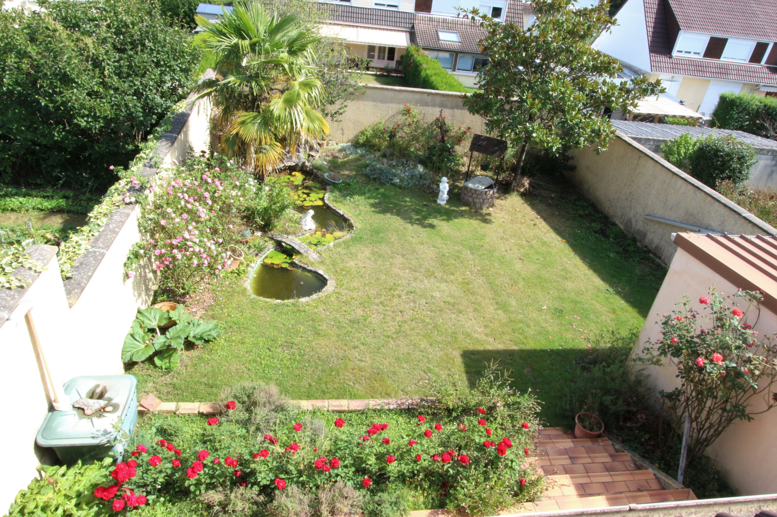 Le rez-de-chaussée se compose d'un séjour ouvert sur une terrasse et le jardin, une cuisine équipée et les toilettes. Depuis ce niveau, vous aurez également accès au grand garage et à la cave qui fait la surface de la maison.
